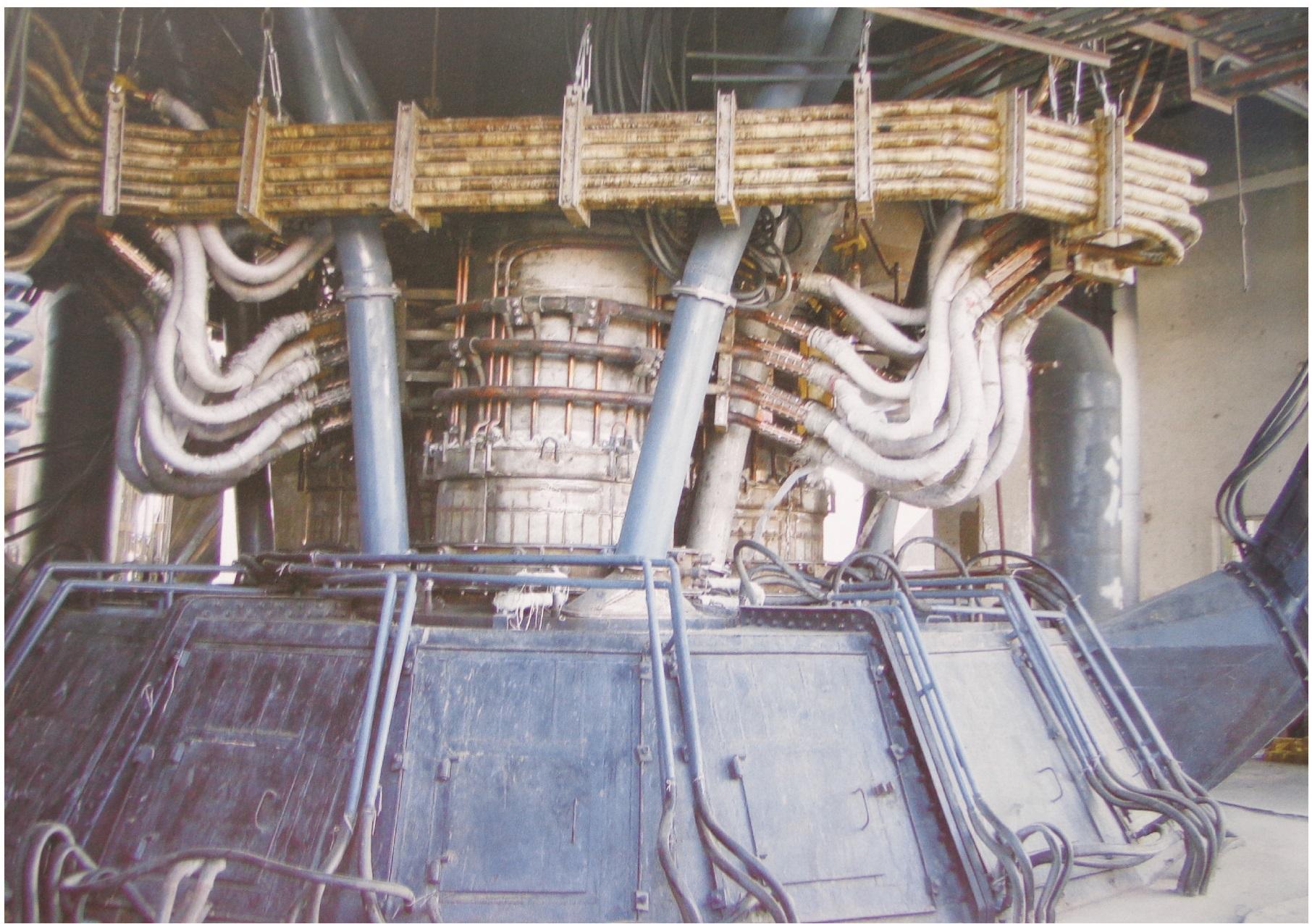 在礦熱爐中,短網(wǎng)是輸送低電壓、大電流電能的裝置。為使它將取自電網(wǎng)的能量最有效地輸入礦熱爐,應(yīng)使短網(wǎng)具有良好的電氣特性。 因此短網(wǎng)載流能力大,電阻小,運(yùn)行溫度低等特性。